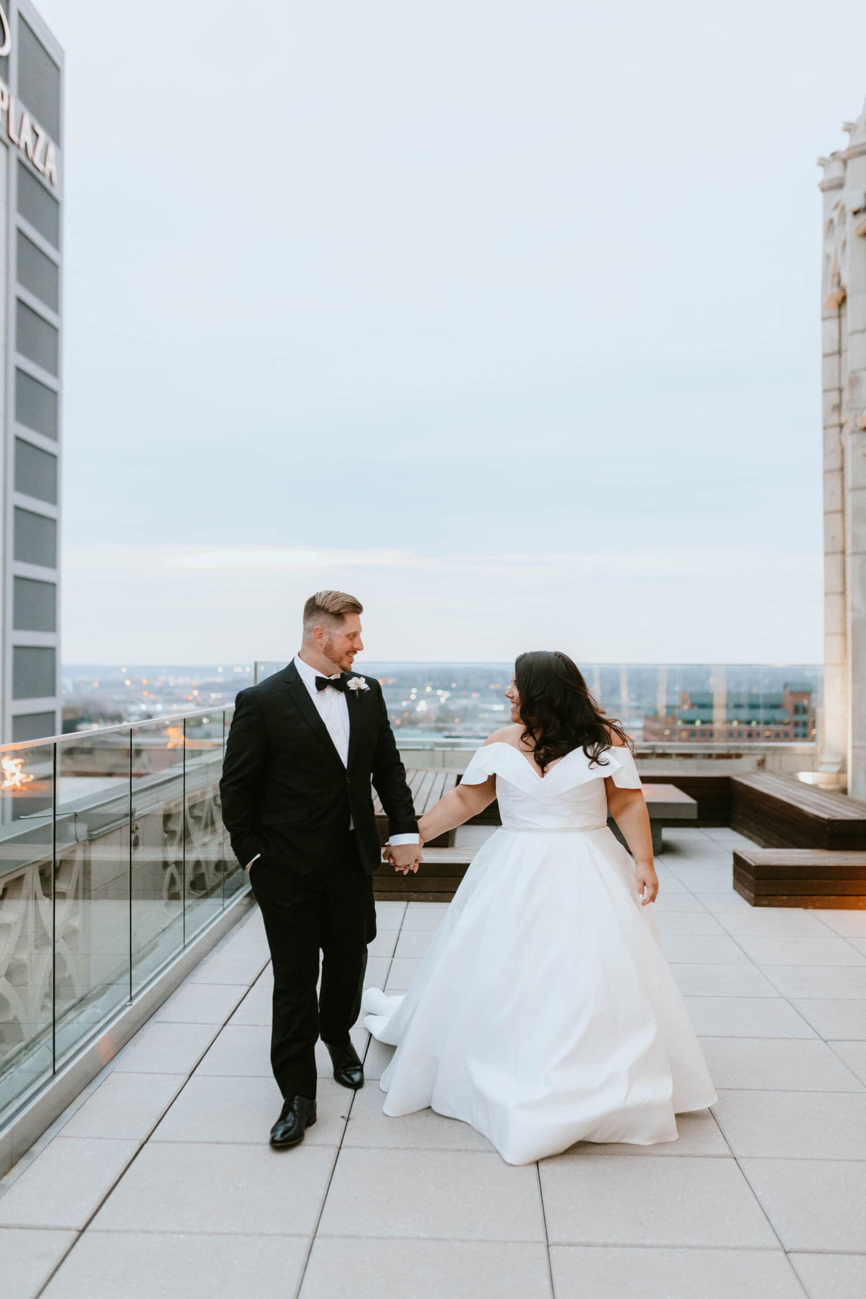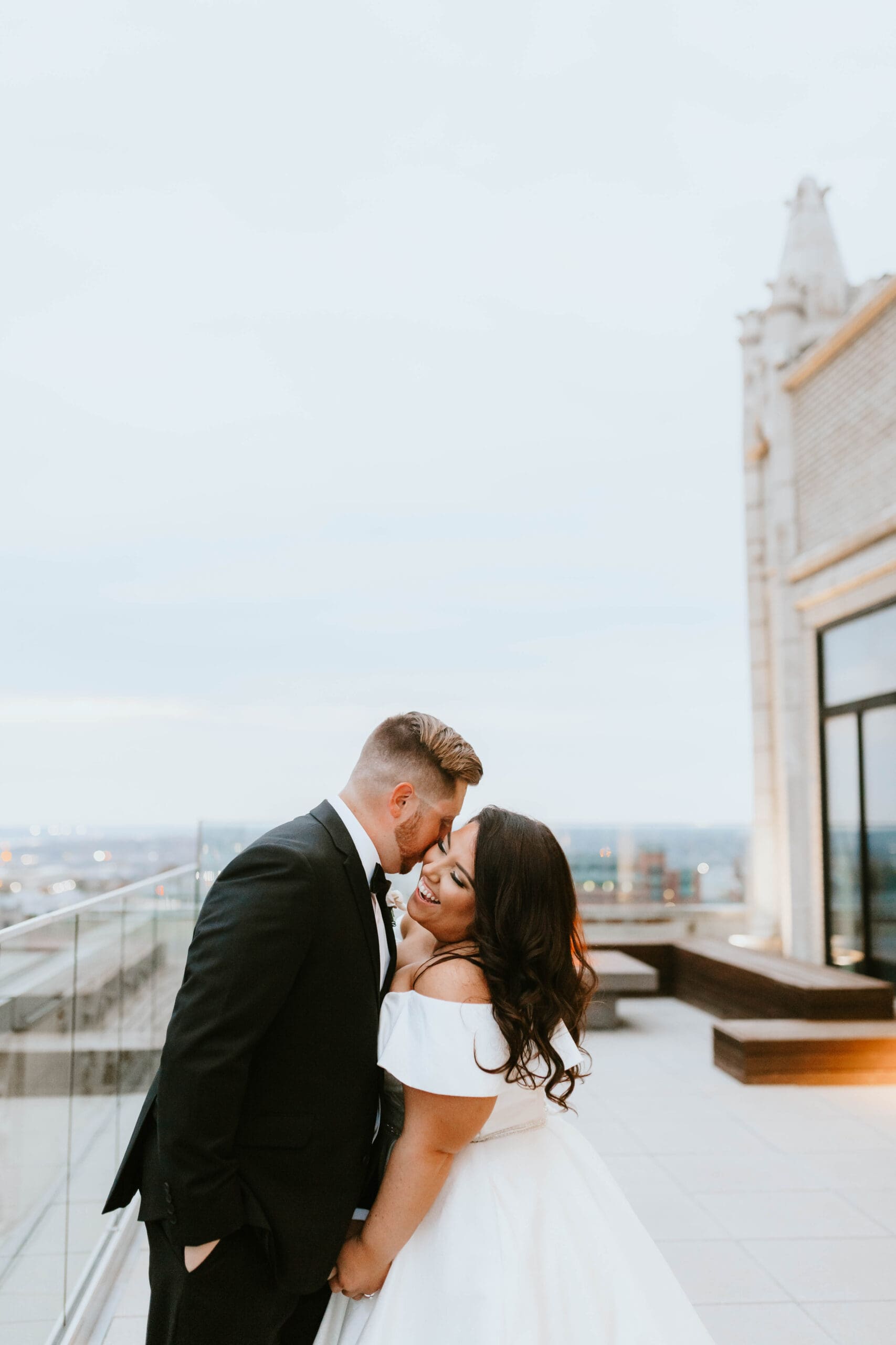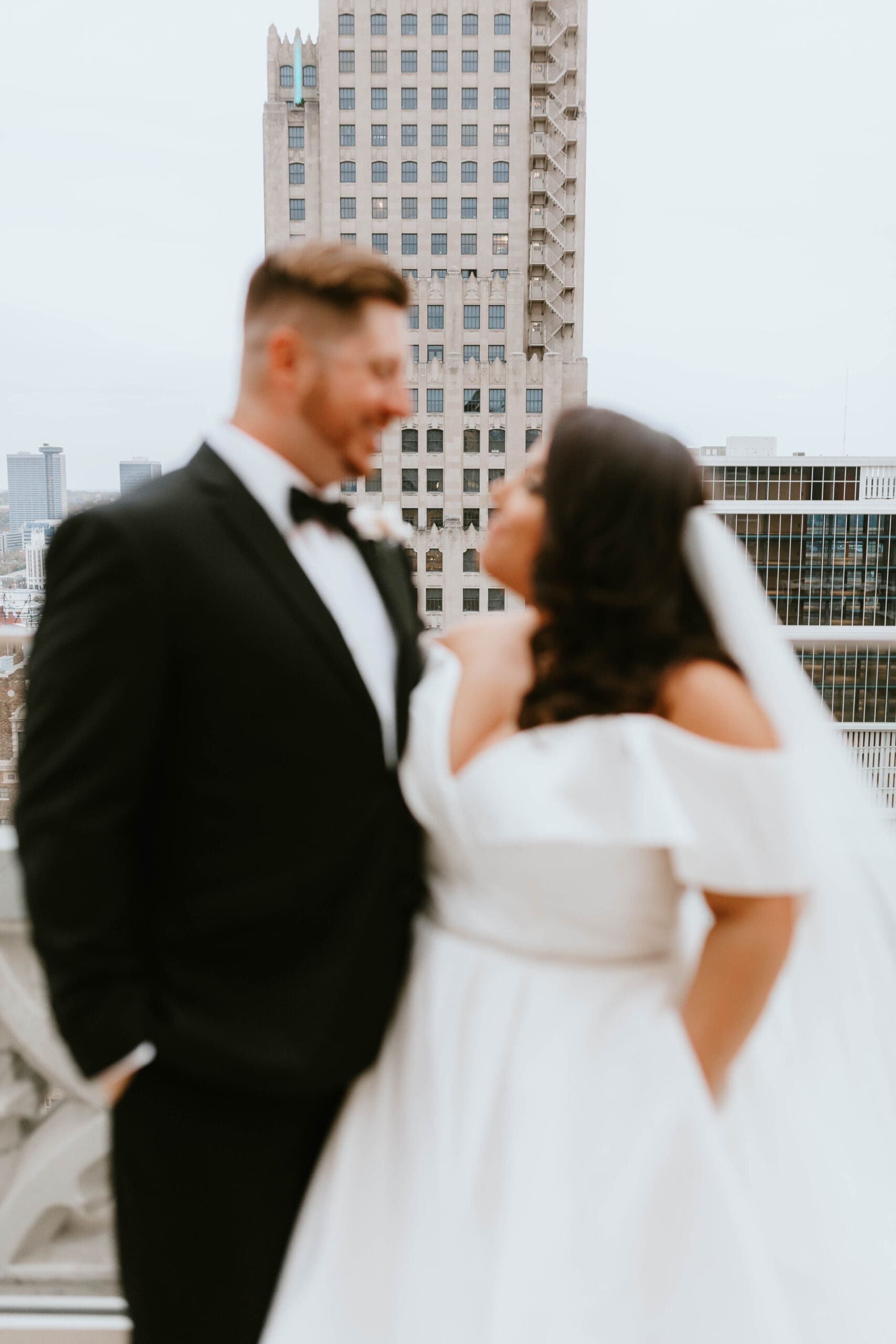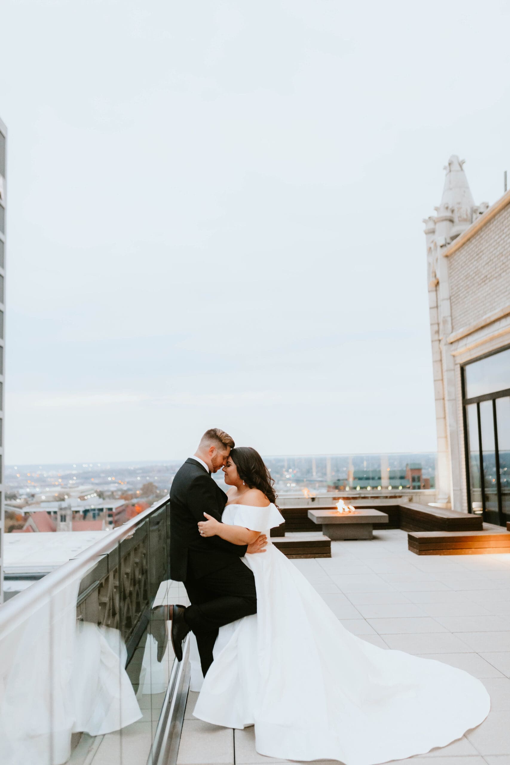 There are endless spots for portraits both inside and just outside the hotel. We often take a few moments during golden hour to sneak out for rooftop or street-level portraits, which is the perfect way to soak in the excitement of downtown and get a fresh perspective for your Kansas City wedding album.
