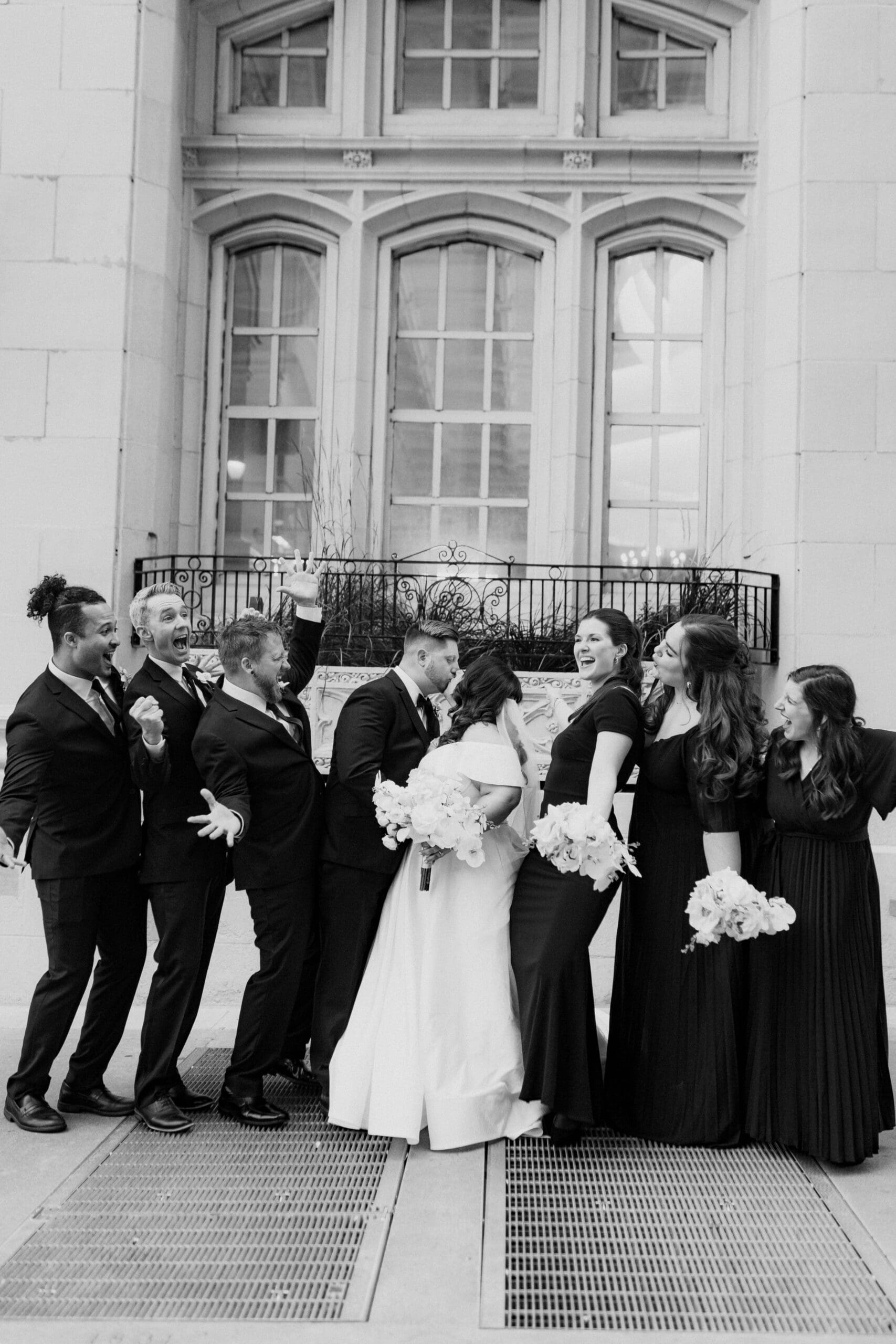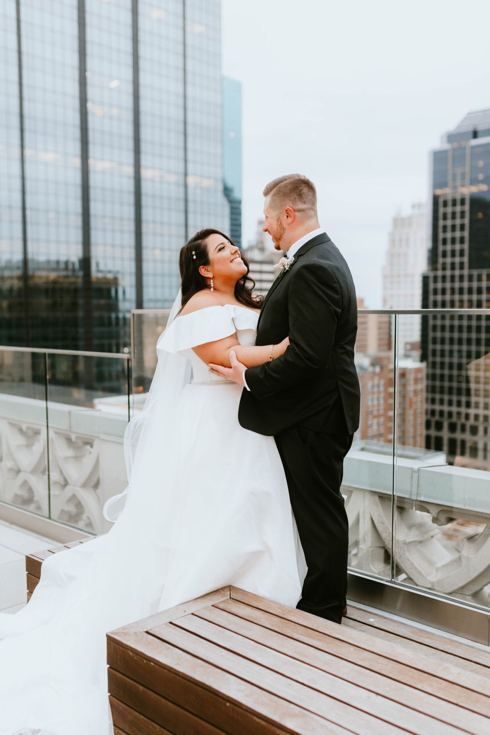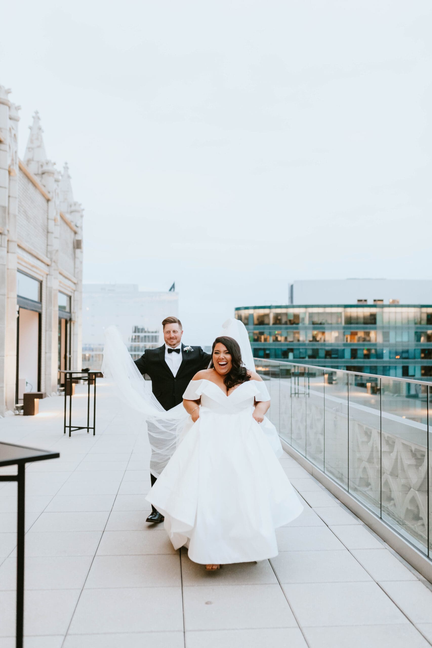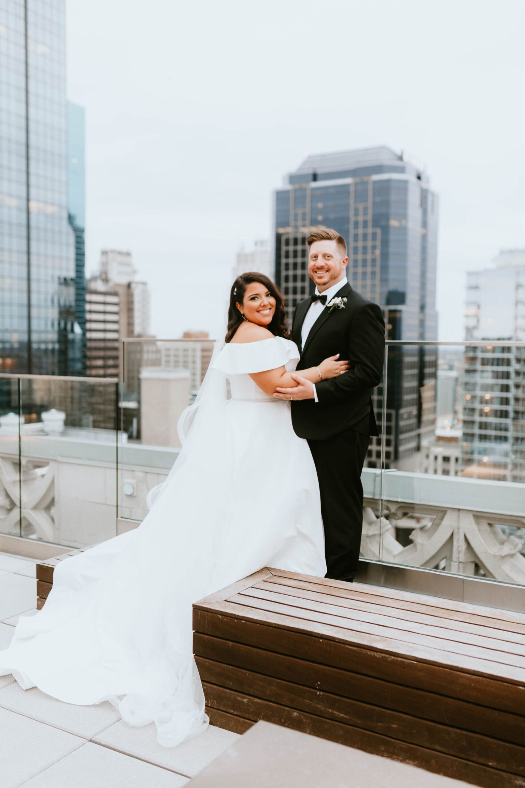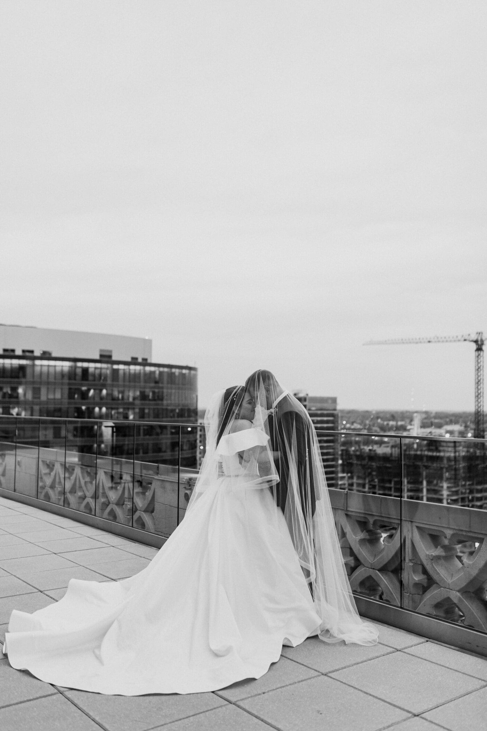 There are endless spots for portraits both inside and just outside the hotel. We often take a few moments during golden hour to sneak out for rooftop or street-level portraits, which is the perfect way to soak in the excitement of downtown and get a fresh perspective for your Kansas City wedding album.