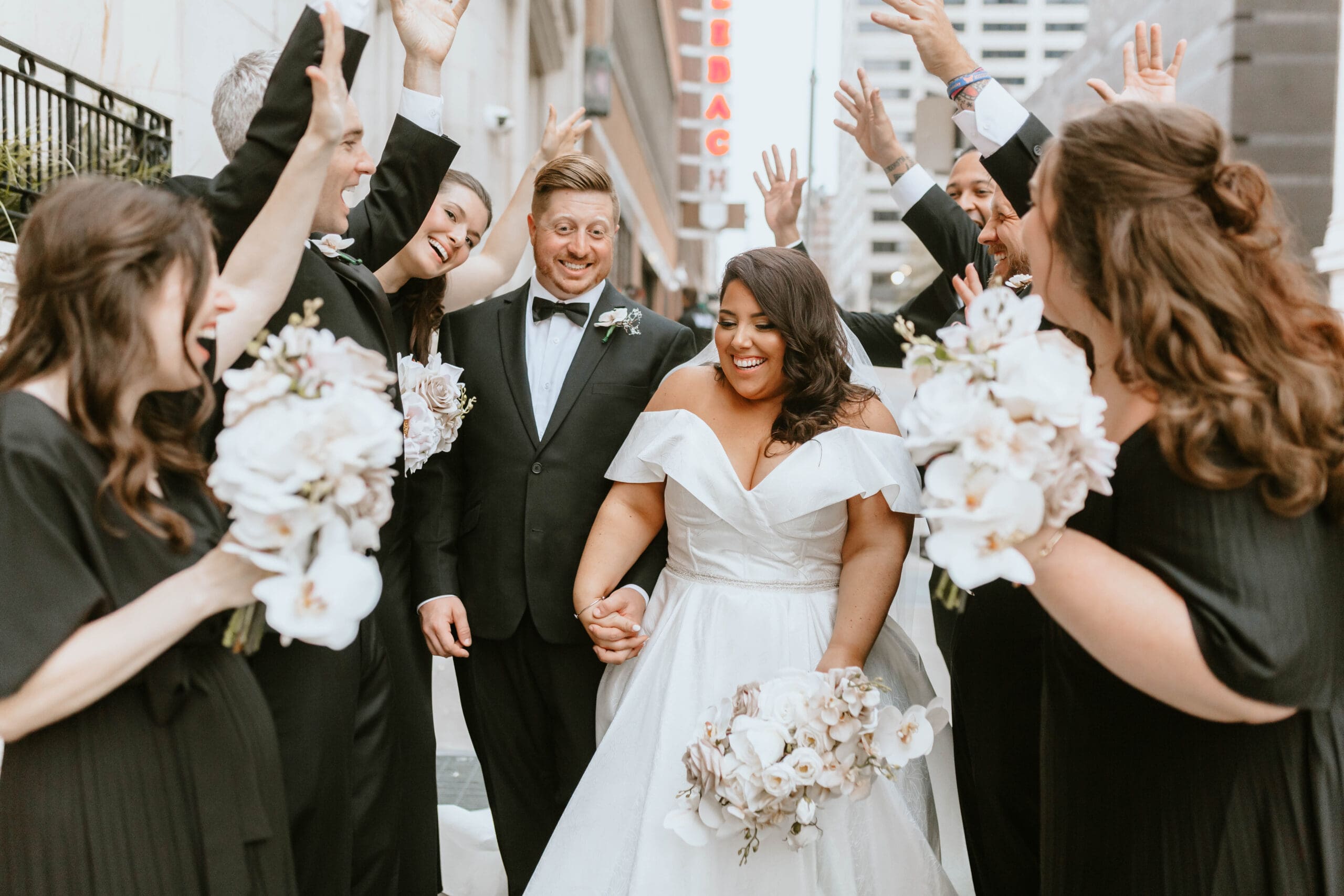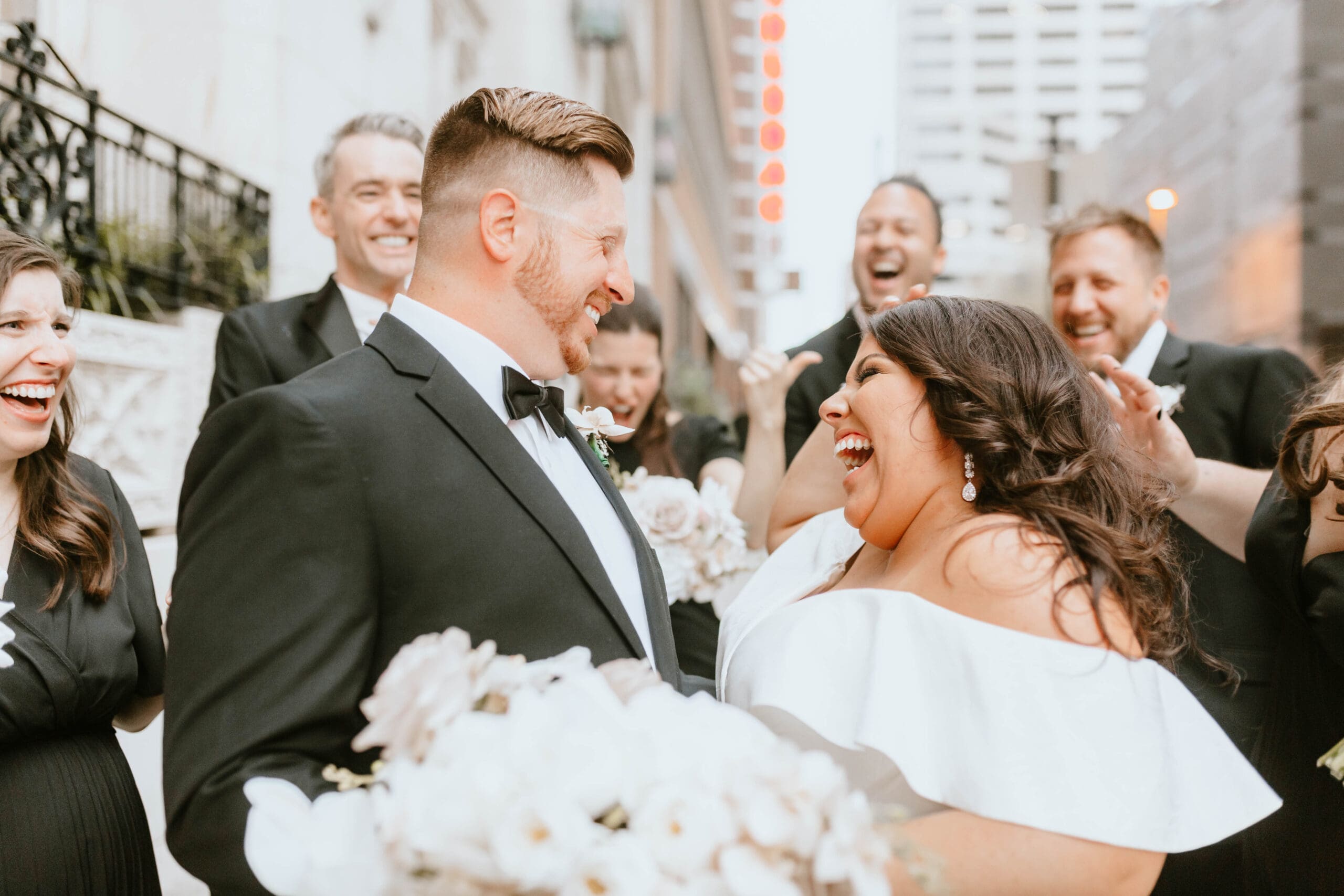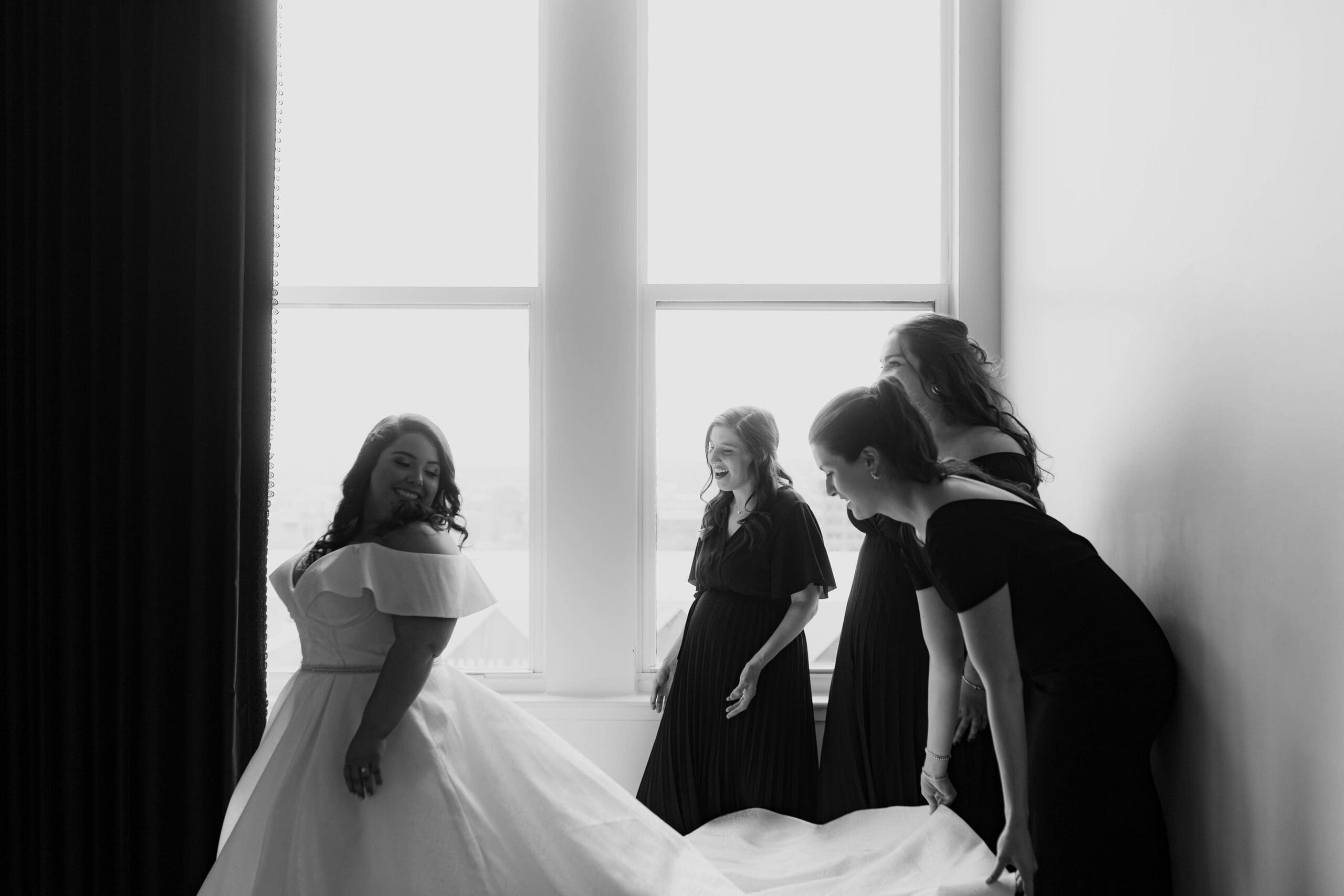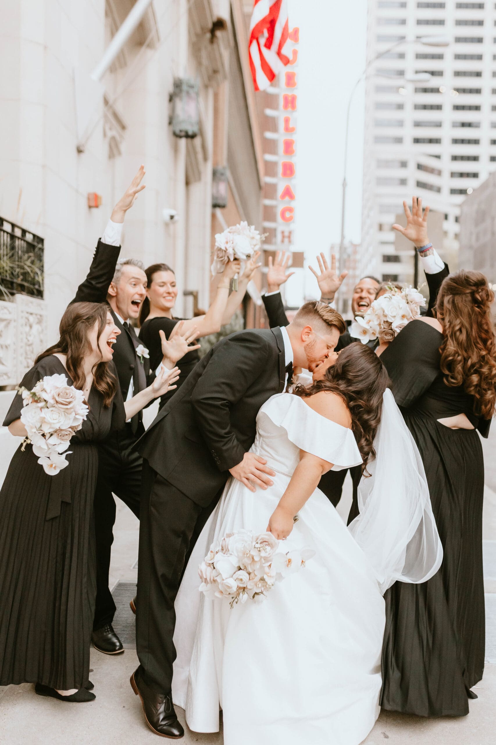 There are endless spots for portraits both inside and just outside the hotel. We often take a few moments during golden hour to sneak out for rooftop or street-level portraits, which is the perfect way to soak in the excitement of downtown and get a fresh perspective for your Kansas City wedding album.